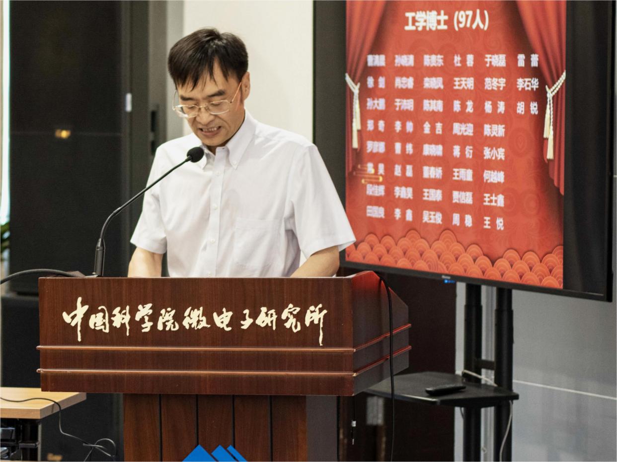 6 月15 日,中國科學院微電子研究所暨中國科學院大學集成電路學院2023屆研究生畢業典禮在微電子所隆重舉行,微電子所所長、黨委書記戴博偉,副所長李泠、導師代表、2023屆畢業生及親屬等300余人共同出席,典禮由教育處副處長吳璇主持。