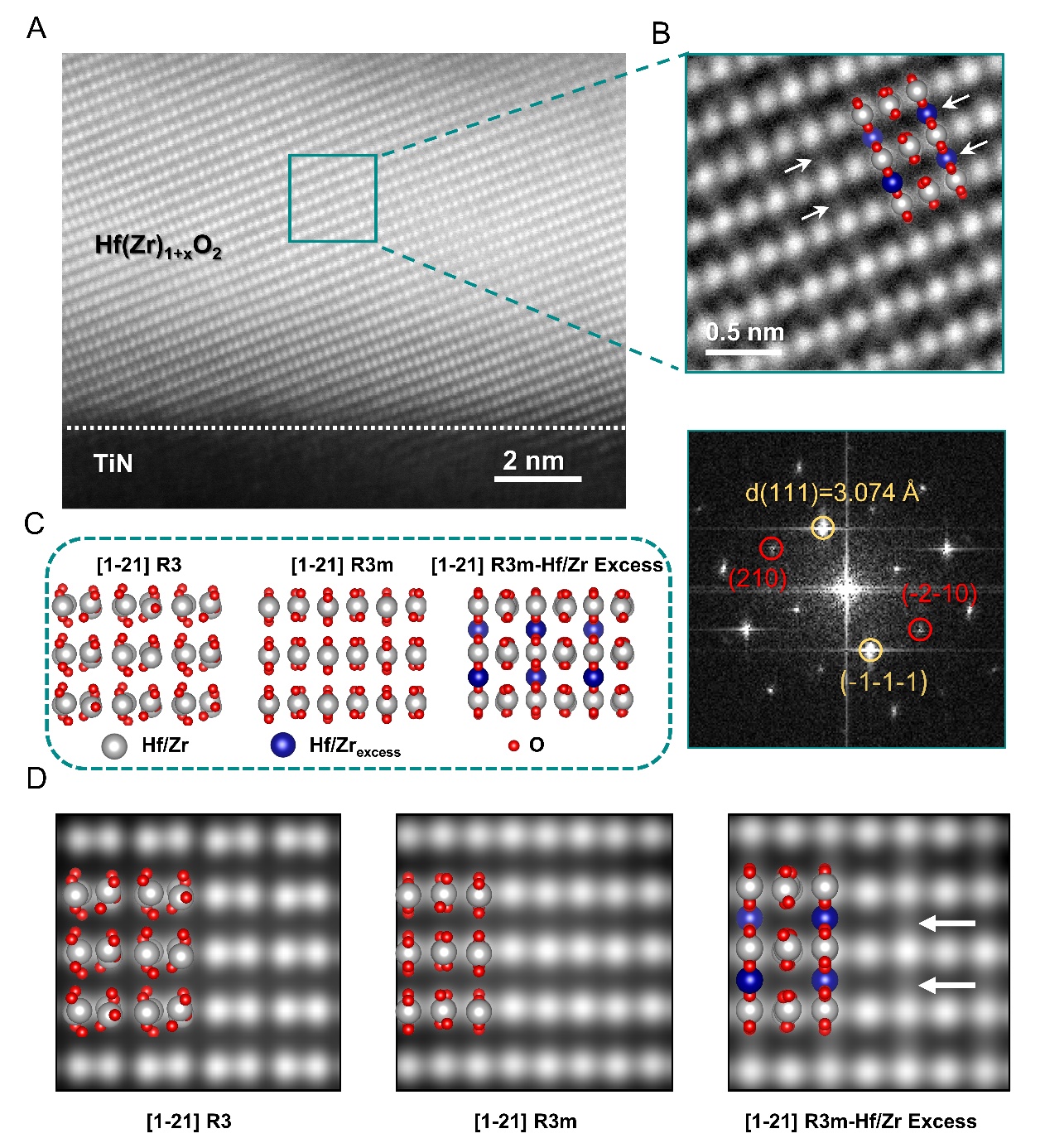圖2富含Hf(Zr)原子的菱面體Hf(Zr)1+xO2薄膜的原子尺度STEM分析