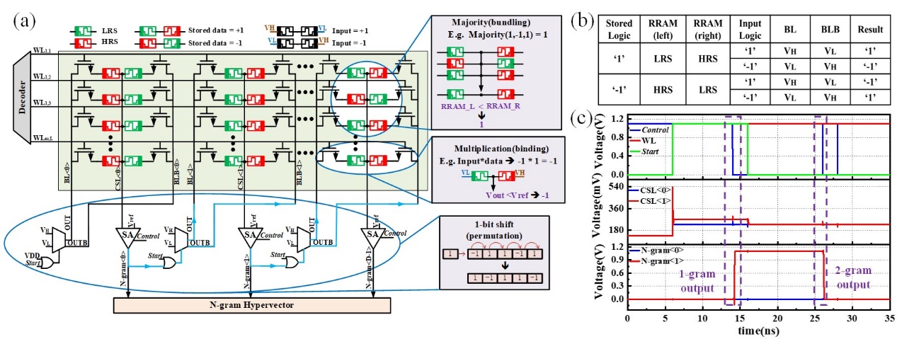 圖2:存內(nèi)高維計算編碼器工作流程、真值表和編碼電路瞬態(tài)響應