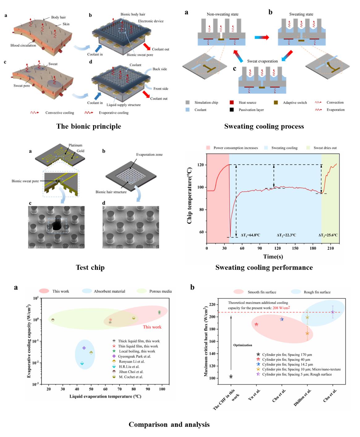 該研究以An adaptive thermal management method via bionic sweat pores on electronic devices為題發(fā)表在Applied Thermal Engineering(2024,122953,https://doi.org/ 10.1016/j.applthermaleng.2024.122953.)。微電子所焦斌斌研究員為論文通訊作者,余立航博士為論文第一作者。