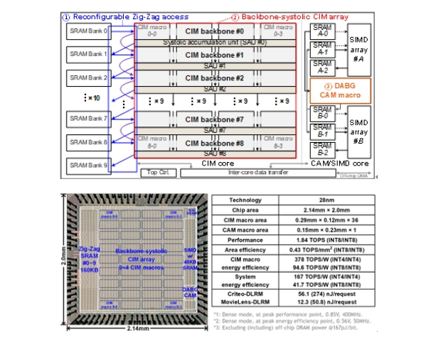 存內(nèi)計(jì)算(CIM)芯片相比傳統(tǒng)馮諾依曼架構(gòu)芯片在宏單元層級(jí)實(shí)現(xiàn)了高能效,但系統(tǒng)層級(jí)的復(fù)雜周邊電路使得系統(tǒng)能效仍然受限,系統(tǒng)/宏單元能效比通常低40%,使其在面向神經(jīng)網(wǎng)絡(luò)和推薦系統(tǒng)應(yīng)用領(lǐng)域仍然存在一些挑戰(zhàn)。此外,對(duì)存儲(chǔ)主導(dǎo)(例如推薦系統(tǒng)的嵌入層)的操作,需要大量的片外訪問(wèn),由于嵌入表不能被完全存儲(chǔ)到片上,即使采用內(nèi)...