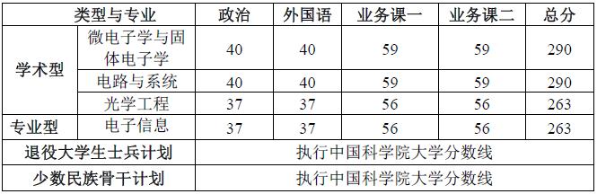1. 學術型光學工程專業接收所內調劑,僅限一志愿報考微電子所學術型專業且過國家A類分數線的考生申請。