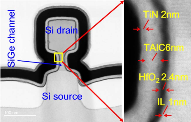 在前述研究基礎(chǔ)上,先導(dǎo)中心團隊采用與先進CMOS器件集成技術(shù)相兼容的工藝制備了VSAFETs,測試了器件性能,并討論比較了與器件性能相關(guān)的溝道鍺摻雜比例、金屬硅化物工藝、Si-Cap、高溫?zé)崽幚?/span>等影響因子,重新調(diào)整了VSAFETs的閾值電壓。