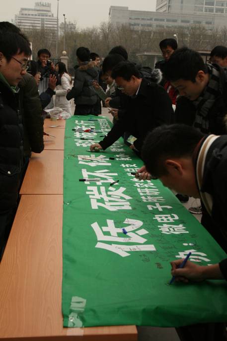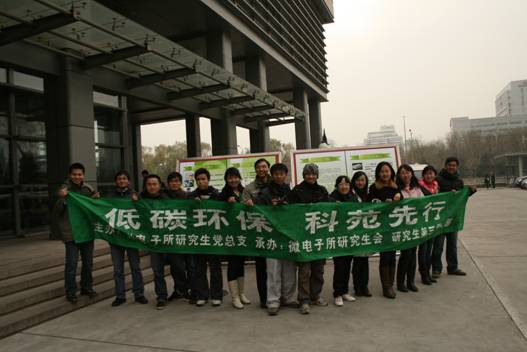 為響應(yīng)黨中央號召,倡導(dǎo)低碳理念,11月29日中午,由微電子所研究生黨總支主辦,研究生會、研究生第三黨支部承辦的主題為“低碳生活,科苑先行”簽名活動在微電子所主樓廣場舉行。此次活動為研究生黨總支開展的“綠色能源”系列活動之一,旨在宣傳倡導(dǎo)綠色環(huán)保、節(jié)能低碳。