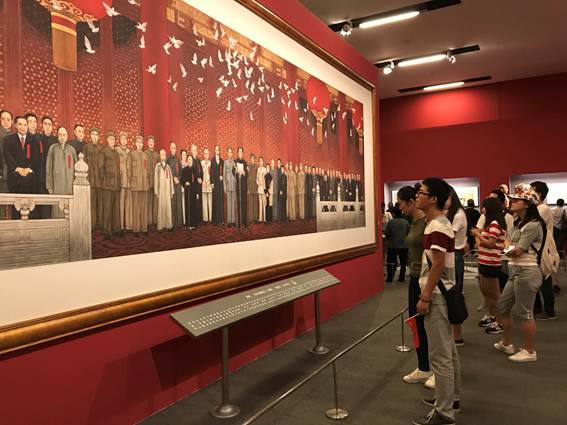 上午10:00,支部成員們到達了中國國家博物館,按照順序分別參觀了開國元勛文物展的“人民軍隊”、“軍事著述”、“艱苦卓絕”、“人民戰(zhàn)爭”四個部分。參觀的過程中,一幅幅珍貴的歷史照片,一件件真實的革命文物,讓同學(xué)們感受到了艱苦卓絕、波瀾壯闊的革命歷程;同時英姿颯爽的開國元勛蠟像和美術(shù)作品,以及觸手可及的革命武器,充分的展現(xiàn)出了在戰(zhàn)爭年代,以毛澤東為首的開國元勛們率領(lǐng)著人民軍隊,不畏艱險,不怕困難,經(jīng)歷的艱苦卓絕的戰(zhàn)斗和英勇悲壯的犧牲。