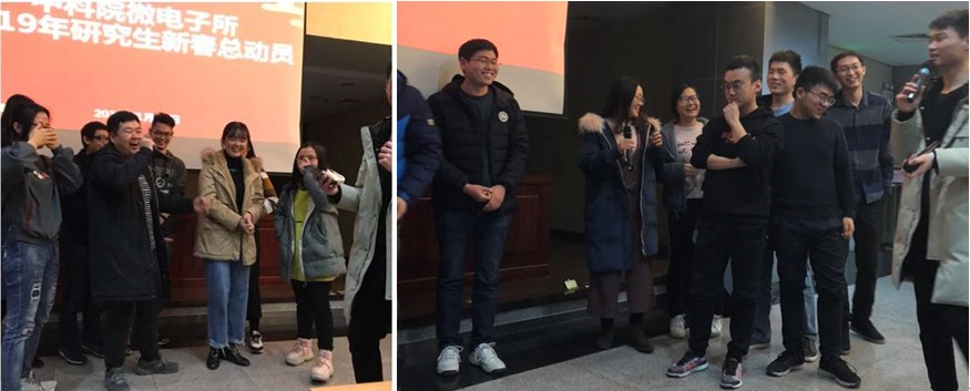 下午2點整,在八樓多功能廳,“研究生新春總動員”活動在隊員們的激情矚目中拉開帷幕,活動共有10支隊伍參與,參與人數約為80人。首先每個團隊激情的向大家展示了各自獨有的青春洋溢的創意隊名、斗志昂揚的口號,迅速形成了擁有共同使命感的團隊!于是:啦啦啦啦啦隊、感知隊、北土城巨蛋隊、新春大吉隊、中午隊、躥天猴隊、中國芯隊、白天干活晚上吃肉隊、高分低壓隊、王者戰隊,聲先奪人的氣勢團隊就此正式誕生,展現了2019年新春時節微電子所研究生激情四射的精神面貌。