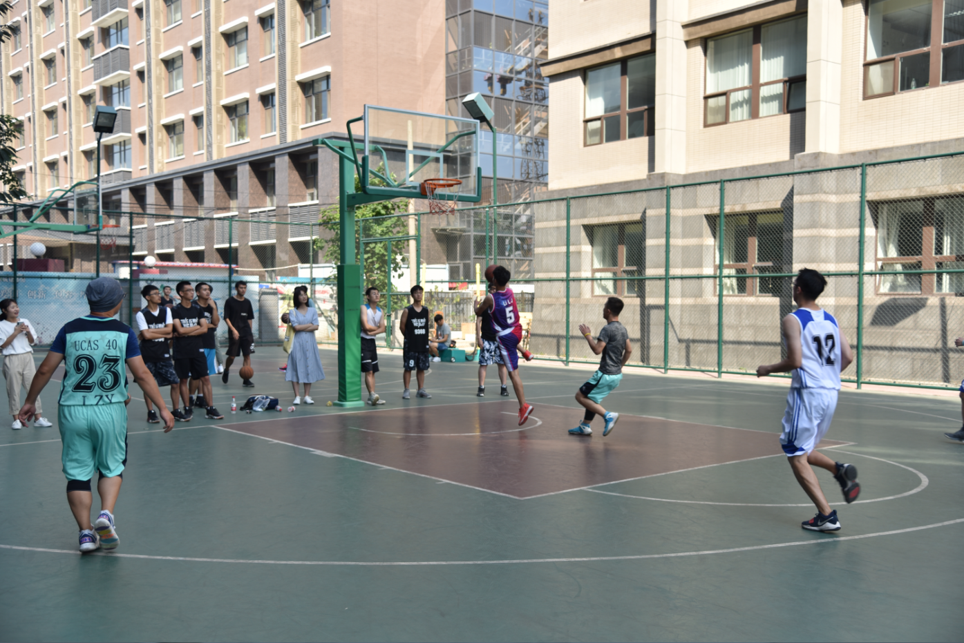 第一場比賽新生1隊VS師兄1隊,新生1隊的師弟們據(jù)傳說,研一在國科大籃球聯(lián)賽上成績斐然,新生隊來勢洶洶。師兄1隊的師兄們實力強勁,在國科大雁棲湖校區(qū)的時候,曾是電子學(xué)院籃球賽的衛(wèi)冕冠軍。隊長石大山還榮獲電子學(xué)院籃球賽的MVP。所以,這一場比賽必定是一場精彩絕倫的比賽。整場比賽一場激烈,新生隊充滿活力,師兄隊投籃神準,在比賽最后時刻仍然充滿懸念,最后只剩10秒,師兄1隊落后1分,微電子所籃球隊隊長石大山持球單打1V4將球打進絕殺,這個絕殺引得全場沸騰,太精彩了。