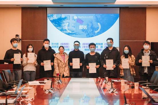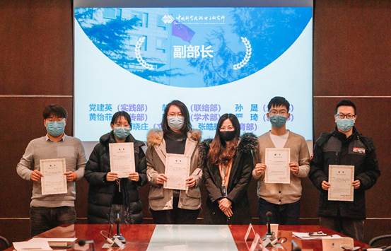 李瑋老師、王欣怡老師以及王璐老師分別為第十七屆研究生會主席團、部長以及副部長頒發(fā)聘書。