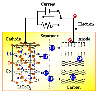 鋰離子電池方面,跑在最前面的是索尼公司。在嘗試了1.1億種正負(fù)極材料和電解液的組合后,索尼挑選出了以LiCoO2為正電極和C為負(fù)電極的方案,鋰離子在充放電循環(huán)過程中,在正負(fù)電極來回“嵌入”與“脫嵌” (見圖2),就像搖椅一樣“搖擺”,所以被形象地命名為搖椅式電池。在這一基礎(chǔ)上,索尼在1992年推出了鋰離子電池(LIB),直徑18mm、長度65mm,也就是當(dāng)今廣泛采用的18650鋰電芯。