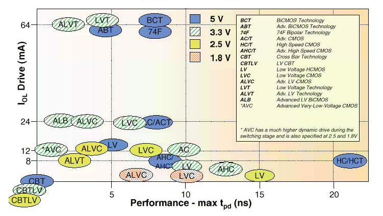 具體情況可以參考TI公司的邏輯器件產(chǎn)品系列圖。
