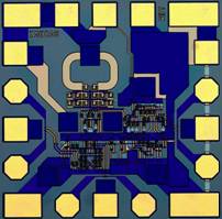 四室HBT小組采用1um GaAs HBT工藝成功研制出K波段15GHz 注入鎖定振蕩器。該振蕩器利用注入信號的諧波鎖定工作于15GHz的振蕩核心,其電路照片如圖1所示。經(jīng)測試,該電路可被2~20倍的偶次諧波鎖定,即最低可采用750MHz信號實現(xiàn)15GHz振蕩器鎖定。此振蕩器能夠方便的實現(xiàn)k波段鎖相,可用于該頻段系統(tǒng)頻率源。