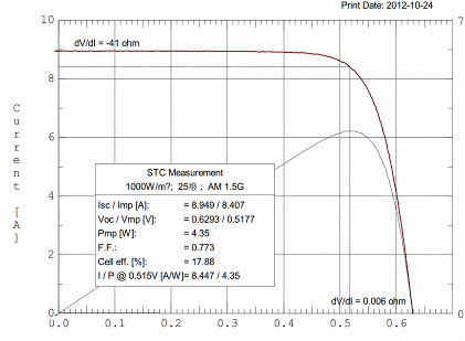 多晶黑硅太陽(yáng)能電池I-V測(cè)試曲線(微電子所,2012)