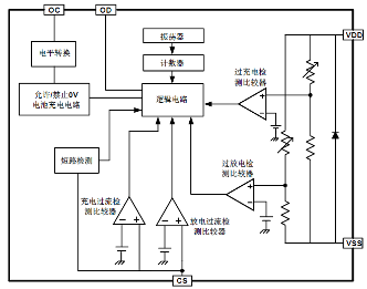 圖1.鋰電池保護(hù)芯片結(jié)構(gòu)框圖