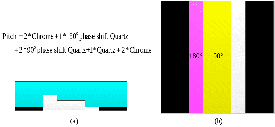圖4. 具有更高對準精度的套刻光柵單周期精細結(jié)構(gòu)示意圖:(a)同時兼顧一級和五級衍射光強的光柵單周期精細結(jié)構(gòu);