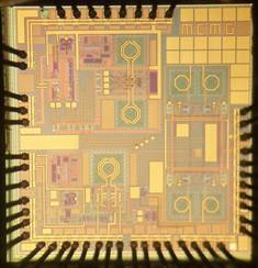 在中國科學(xué)院青年創(chuàng)新基金和微電子所所長基金的支持下,我所微波器件與集成電路研究室(四室)張海英研究員領(lǐng)導(dǎo)的課題組,針對中國UWB將開放的高頻段6-9GHz開展了射頻集成電路設(shè)計研究,采用0.18um RFCMOS工藝一次流片即測試成功了以下幾款關(guān)鍵核心電路:1、3.9-4.9GHz鎖相環(huán)式頻率綜合器芯片:該頻率綜合器中的VCO振蕩頻率可以覆蓋3.9-4.9GHz,可以在該范圍內(nèi)實現(xiàn)頻率的精確鎖定,相位噪聲小于-95dBc/Hz@1MHz offset,參考雜散小于-40dBc;2、6.5-7.2GHz 壓控振蕩器芯片:該VCO的頻率調(diào)諧范圍達(dá)到700MHz,相位噪聲小于-90dBc/Hz@1MHz offset;3、6-9GHz低噪聲放大器芯片:該LNA在6-9GHz的范圍內(nèi)增益大于18dB,S11、S22均小于-10dB;4、6-9GHz下變頻器芯片:該電路可以將6-9GHz的超寬帶射頻信號下變頻至模擬基帶信號,變頻增益大于5dB。