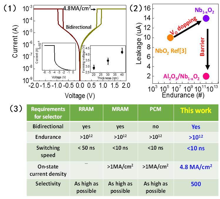 (1)NbOx選通管的基本I-V特性;(2)通用選通管的設計思路;(3)選通管特性與新型存儲器對選通管要求的對比