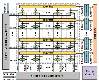 圖2. 數(shù)字可重構(gòu)存內(nèi)計算芯片架構(gòu)圖