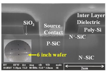 圖2. 在6英寸工程襯底和外延層上制造的SiC MOSFET溝道區(qū)域的橫截面高分辨率透射電子顯微鏡(HRTEM)圖像