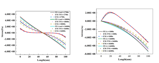 圖3:不同時間段電遷移整體應(yīng)力分布