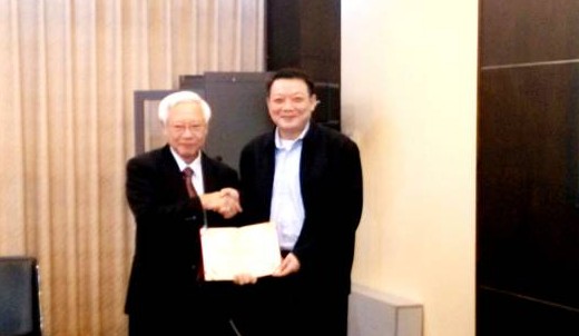 葉甜春所長向Hiroshi Iwai教授(左)頒發(fā)聘書