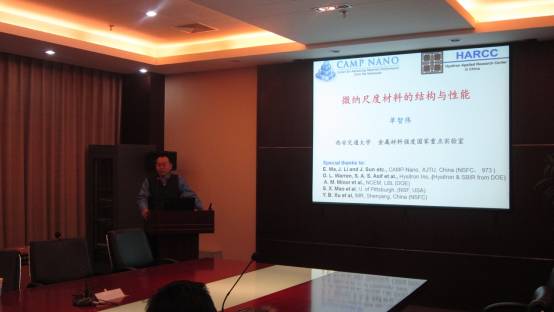 單智偉教授首先介紹了微納米力學(xué)的相關(guān)知識,讓與會人員有了初步的認(rèn)識。隨后介紹了微納尺度材料的結(jié)構(gòu)與性能以及與之相配套的先進(jìn)制備、測試與表征技術(shù)的應(yīng)用和發(fā)展情況,還介紹了以原位、動態(tài)、定量為主要特征的先進(jìn)技術(shù)設(shè)備,結(jié)合計(jì)算機(jī)模擬技術(shù),選擇典型材料為主要研究對象系統(tǒng)建立起的微納尺度材料結(jié)構(gòu)與性能間的定量關(guān)系等問題。報(bào)告后,與會人員與單教授就定量的原位電鏡變形技術(shù)發(fā)展以及應(yīng)用等行業(yè)關(guān)注的技術(shù)問題進(jìn)行了熱烈的學(xué)術(shù)討論。