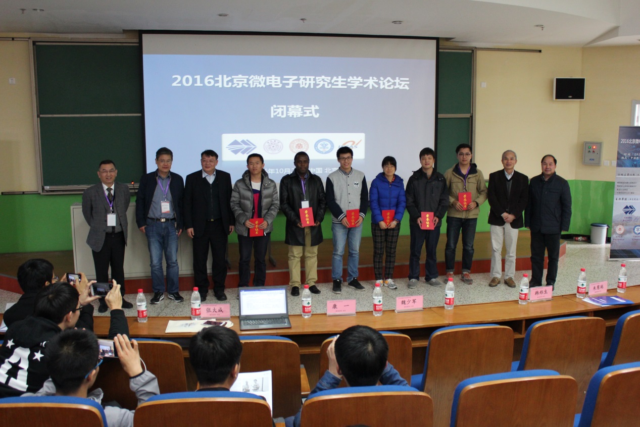 在論壇分會場,來自中科院微電子所、半導體所、電子所,清華大學微電子學研究所,北京大學微納電子學研究院,北京有色金屬研究總院的64位研究生,結合各自研究領域分別作了學術報告,并圍繞微電子領域的設計與應用、制造與工藝、封裝與測試三大模塊進行了交流研討。經各分會場技術委員綜合裁定,評選出8位優秀報告人并頒發榮譽證書。