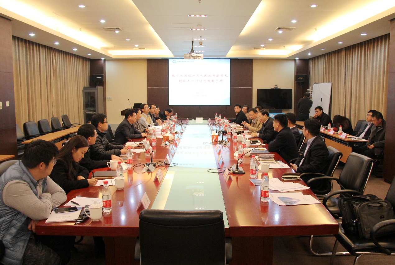 會上,李培金代表微電子所對胡振杰一行的來訪表示熱烈歡迎,簡要介紹了微電子所總體發(fā)展情況、技術(shù)成果和產(chǎn)業(yè)化工作進展。胡振杰介紹了福州發(fā)展電子信息產(chǎn)業(yè)的戰(zhàn)略定位和產(chǎn)業(yè)配套環(huán)境,希望引進微電子所技術(shù)成果和科研力量共同發(fā)展智慧城市、健康養(yǎng)老等現(xiàn)代服務產(chǎn)業(yè),邀請微電子所技術(shù)人員到福州實地調(diào)研考察、交流合作。