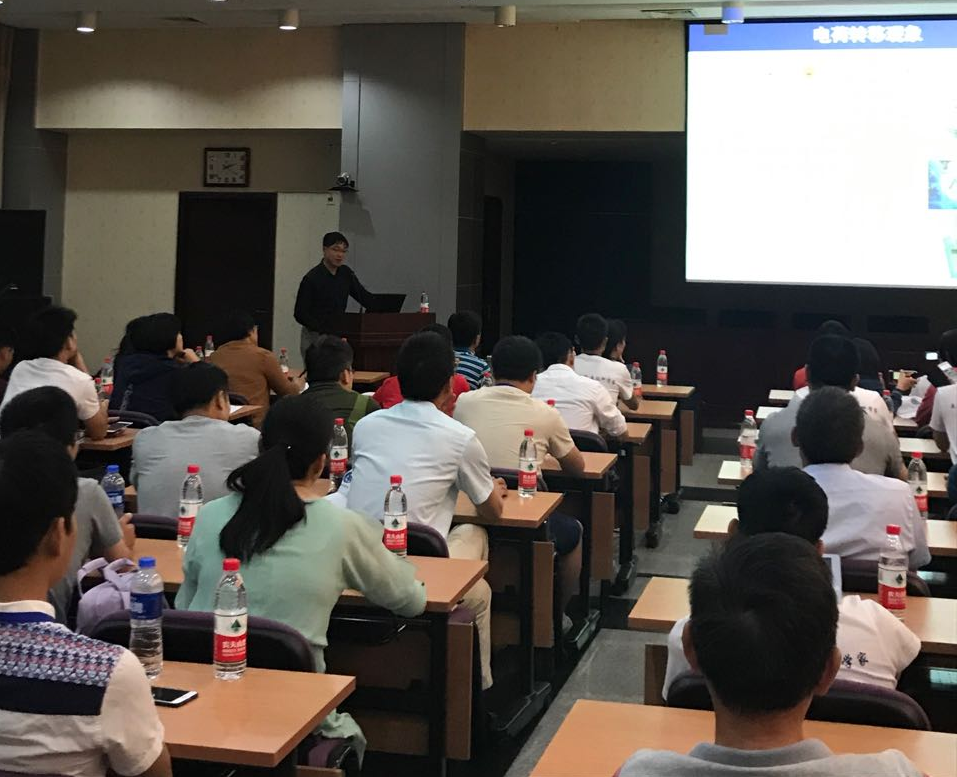 微電子所高頻高壓器件與集成研發中心副研究員王盛凱作了題為《電荷轉移與人工智能》的科普報告,結合生動的視頻展示,介紹了麥克斯韋方程組及其第四方程中時變極化場在先進能源領域中的應用,以及柔性駐極體發電技術在未來物聯網建設、可穿戴低功耗電子、微小能源供給等方面的應用。他簡要地回顧了人工智能的發展歷史,從電控生物體活動引出了人工智能的重要分支——仿生智能,并介紹了仿生智能研究中的一些關鍵生物學現象,如STDP學習理論、神經系統的可塑性、長程記憶、突觸濾波等。生動的科普報告讓來訪教師產生了濃厚的興趣,大家紛紛就感興趣的話題與王盛凱進行了交流。