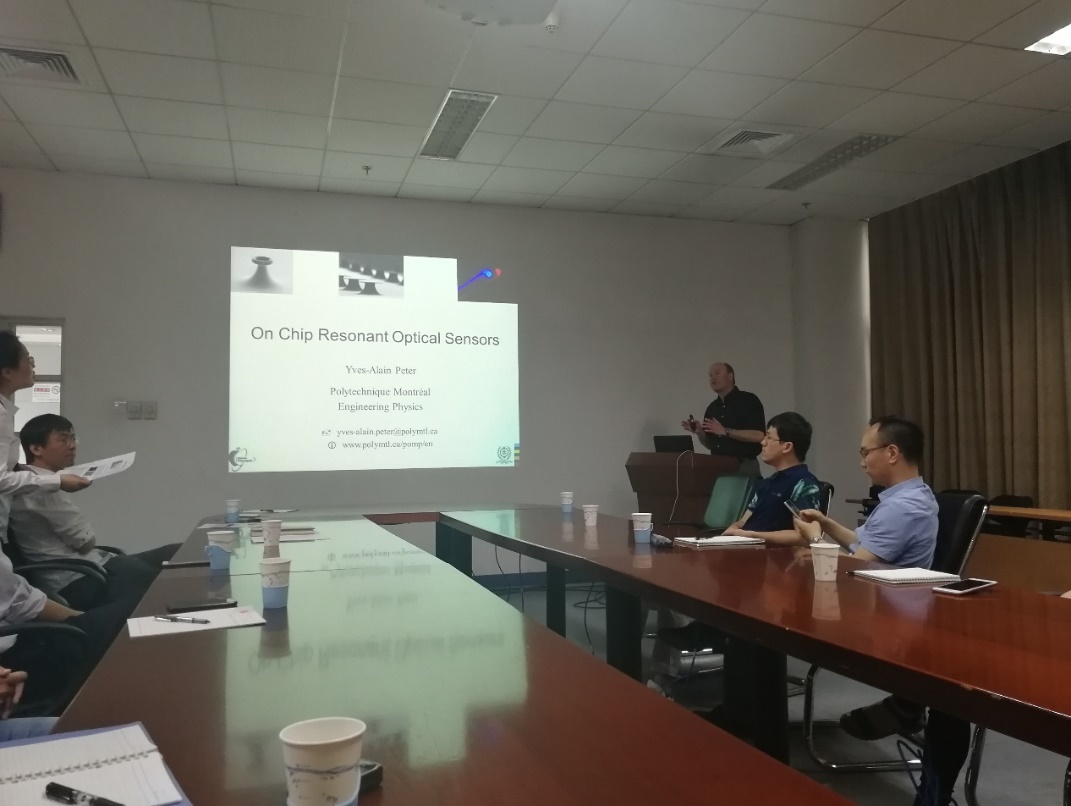 Peter以芯片上光學微腔制作和設計為主題,講解了利用微納加工技術,在硅芯片上設計并制作光學微機電系統的技術方法。該技術可應用于投影系統、光通信、生物醫學成像和望遠鏡系統等。Peter介紹了所在團隊開發的新型光學微腔,該微腔對環境極為敏感,有助于優化傳感器和其他光子器件結構。他還介紹了芯片上的光學傳感器陣列開發、利用光纖和高功率激光器制造微球腔體等技術。與會人員就感興趣的話題,同Peter進行了深入交流。