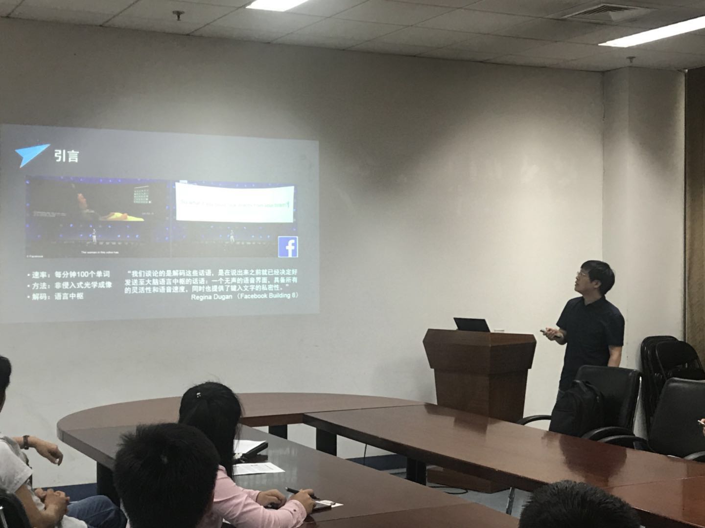 王毅軍以“腦—機接口”為主題作了報告。“腦—機接口”是指通過建立大腦和外部設備的直接信息傳輸通道來幫助人們實現“心想事成”,可替代、恢復或增強人體的感知、認知和運動功能。王毅軍介紹了“腦—機接口” 技術研究的歷史與現狀、技術系統構成和實現方法,及其在殘疾人輔助通訊等領域的典型應用,介紹了其所在的科研團隊在高速率“腦—機接口”研究中的進展。李婷在報告中介紹了采用近紅外光譜的人體復雜組織成像技術,包括檢測模型算法、信號處理技術,及其在臨床中的成功應用案例,特別介紹了其所在的科研團隊在利用近紅外光技術研究血流動力學方面的工作進展。與會人員就感興趣的話題,同兩位報告人進行了深入交流。會場氣氛活躍。