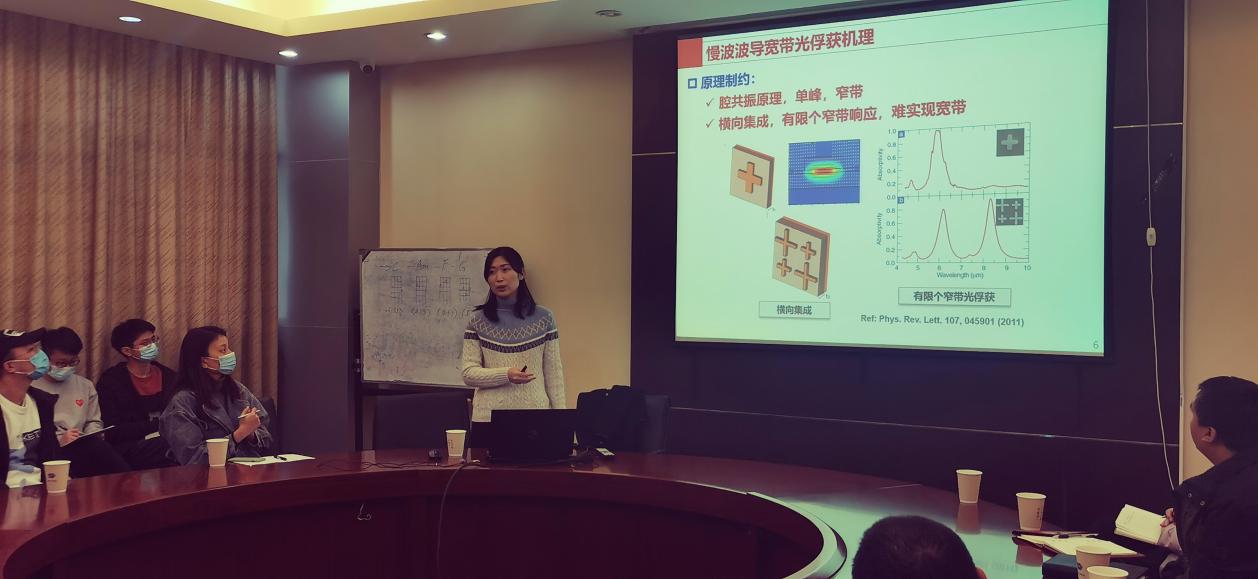 第九期講座邀請?zhí)砉ご髮W(xué)崔艷霞教授作題為《納米結(jié)構(gòu)光俘獲效應(yīng)及其在光電器件中的應(yīng)用》,介紹了以光俘獲新機(jī)理研究拓寬響應(yīng)帶寬以及將近場場增強(qiáng)效應(yīng)直接作用于半導(dǎo)體光敏層,提升光電轉(zhuǎn)換效率的研究新思路。