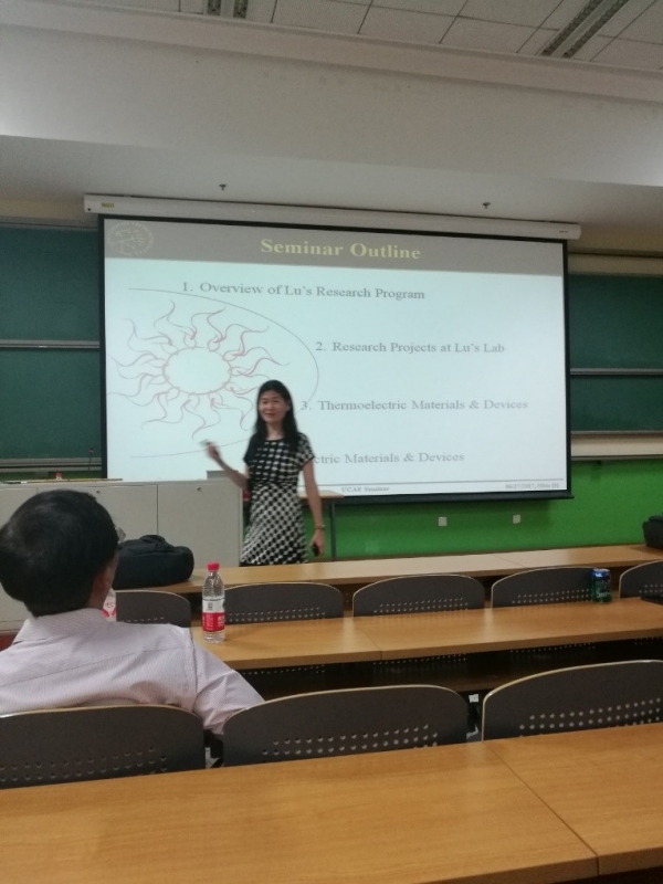 2017年6月27日晚19時(shí)整在中國(guó)科學(xué)院大學(xué)雁棲湖校區(qū)教一108教室,由微電子學(xué)院主辦的科技前沿講座——“能源納米材料與器件”開(kāi)講。我們邀請(qǐng)到了普渡大學(xué)終身教授陸娜博士為大家講解納米材料中熱電材料的研究現(xiàn)狀和未來(lái)趨勢(shì),以及多年來(lái)她在研究熱電材料上的心得與經(jīng)驗(yàn)。半導(dǎo)體所所長(zhǎng)助理、半導(dǎo)體能源研究發(fā)展中心副主任王曉亮研究員也列席本次講座。
