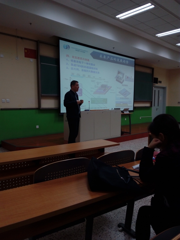 2017年11月10日晚19時,中科院微電子所研究員曹立強做客,由中國科學院大學國家示范性微電子學院(以下簡稱學院)主辦的“集成電路新技術及應用”系列講座。在國科大雁棲湖校區(qū)教1-107為同學們帶來一場題為“三維系統(tǒng)級封裝前瞻性技術研究”的精彩講座。