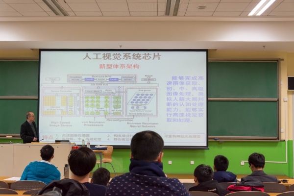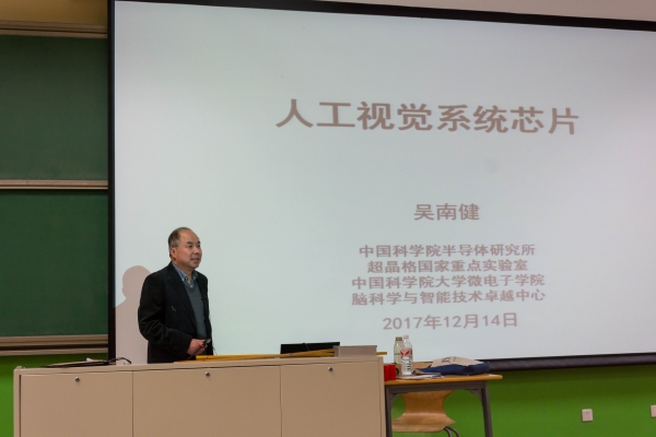 2017年12月14日晚七點,中國科學(xué)院半導(dǎo)體所吳南健研究員為國科大的同學(xué)們帶來了題為“人工視覺系統(tǒng)芯片”的精彩講座。這是微電子學(xué)院主辦的“類腦芯片技術(shù)及應(yīng)用專題”系列科學(xué)前沿講座的第五場。