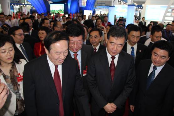 圖1、中共中央政治局委員、中共廣東省委書記汪洋,全國人大常委會副委員長蔣樹聲等領(lǐng)導參觀中科院展區(qū)