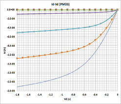 圖3 PMOS的Id-Vg轉移曲線以及Id-Vd輸出曲線(中科院微電子研究所,2012)