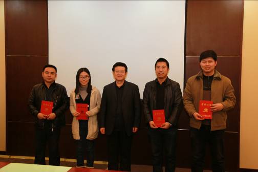 李培金書記(中)為2012年度信息宣傳工作一等獎獲獎者頒獎