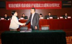 中科院EDA中心主任陳嵐(左)和南京徐莊軟件產業基地管委會主任張仲金(右)簽訂合作協議