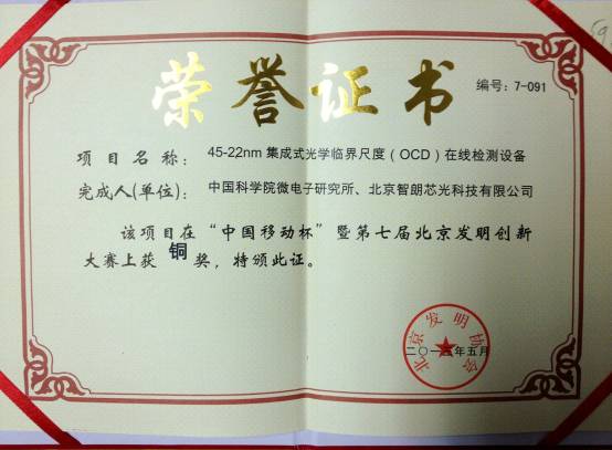 此次大賽的頒獎儀式是在5月19日開幕的全國科技活動周暨北京科技周舉辦期間進行的。大賽以“弘揚北京精神科技改變生活”為主題,面向國內外征集科技發明項目。通過歷時五個多月的參賽報名、網上公示和專家評審,經初賽、復賽和決賽三個階段,大賽組委會最終在參賽的1272個項目中評選出特等獎1項,金獎29項,銀獎70項,銅獎100項,微電子所“固態射頻電源系統” 和“45-22nm集成式光學臨界尺度(OCD)在線檢測設備”兩項成果分獲大賽組委會頒發的發明創新獎“金獎”和“銅獎”。