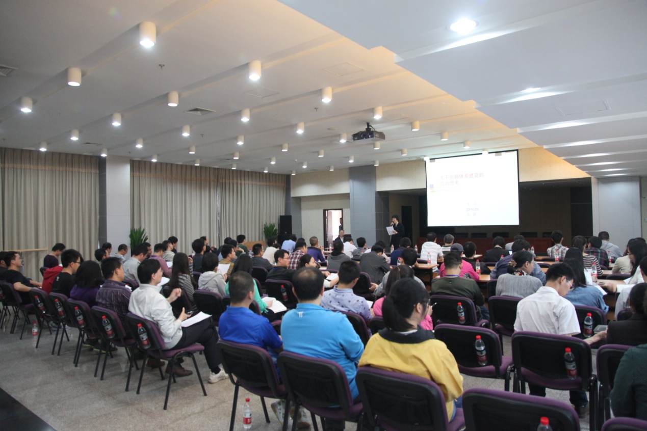 5月14日,微電子所舉辦“科研道德與學風建設”主題報告會,邀請全國政協人口資源與環境委員會副主任、中國科協原黨組副書記、副主席、書記處書記齊讓同志作題為《關于創新體系建設的幾點思考》的報告。微電子所副所長周玉梅主持報告會。微電子所近三年新聘任的副高級及以上專業技術職務人員、副處級及以上行政職務人員等近100人參加報告會。