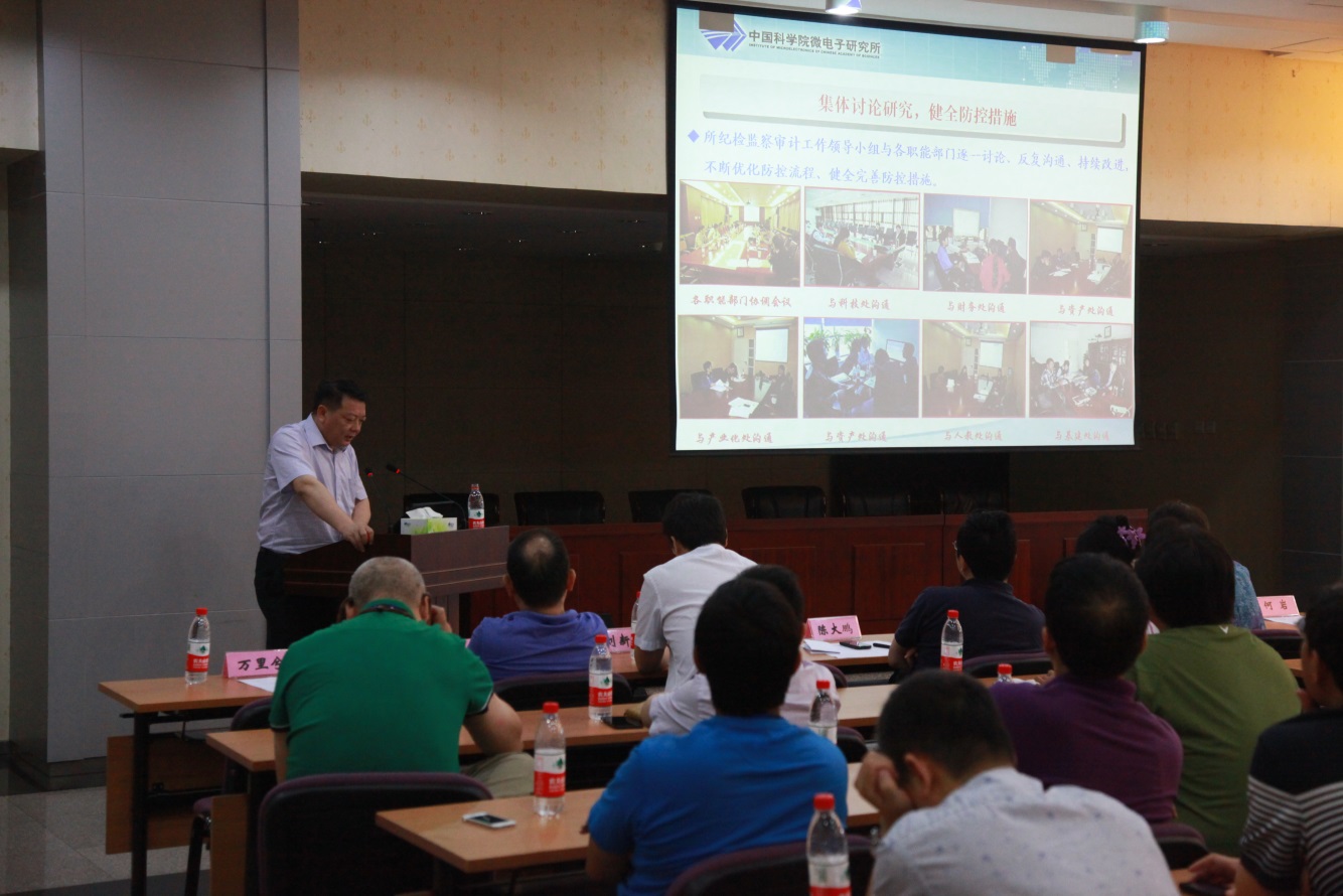 葉甜春所長代表所領導班子作了題為《扎實開展黨風廉政建設和反腐倡廉工作,為科技創新提供有力支撐和保障》的工作報告。報告從“以 ‘精細化管理’為切入點,推進廉潔從業風險防控;持續開展內部審計,加強科研經費監管;加大監督檢查力度,切實加強作風建設;夯實基礎注重預防,推進懲防體系建設”等四個方面匯報了微電子所2012—2013年黨風廉政建設和反腐倡廉工作貫徹落實情況以及取得的成效,并結合當前工作與思考對研究所今后反腐倡廉工作提出了更高的要求。他表示,微電子所黨政領導班子將認真貫徹落實上級工作部署,堅持系統謀劃、落實責任,堅持強化檢查、嚴肅紀律,堅持精細管理、防控風險,堅持警鐘長鳴、防患未然,堅持所務公開、黨務公開,為營造和維護風清氣正的科技創新環境、實施“率先行動”計劃、推動“創新2020”和“一三五”規劃落實提供更加有力的支撐和保障。全體參會人員認真聽取報告并填寫了《反腐倡廉工作民主測評表》。