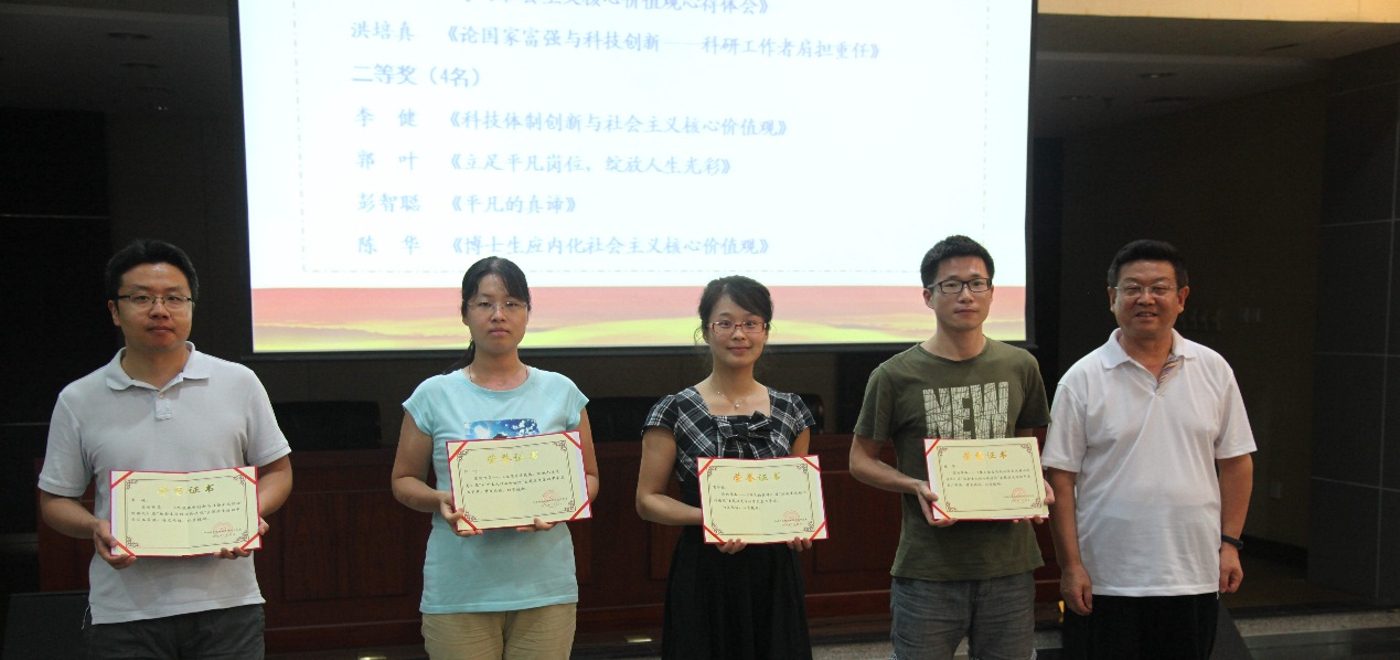 李培金書記對新任黨務干部提出了履職要求:第一,要在黨言黨、知黨情、懂黨務,不斷加強業務學習,熟知黨務工作流程,說內行話、辦內行事;第二,要身先士卒、以身作則,踐行“三嚴三實”,在黨務和科研工作中發揮模范帶頭作用;第三,要有奉獻精神,肯付出、敢擔當,盡職盡責地做好份內各項工作。他還與各黨總支書記、黨支部書記簽訂了個性化的黨風廉政建設責任書,并為“社會主義核心價值觀”主題征文活動獲獎集體和個人頒發了榮譽證書。