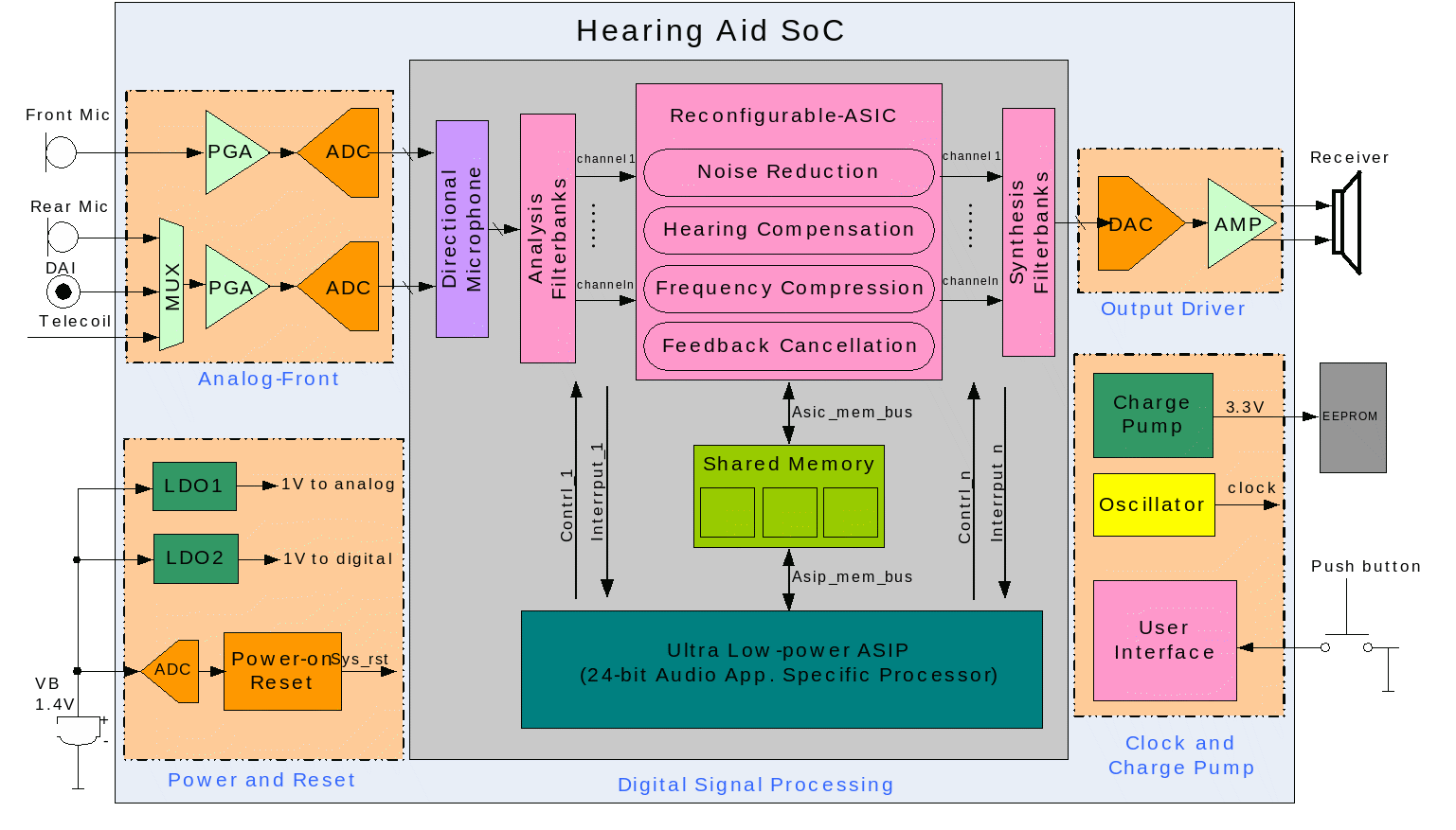 圖1.低功耗助聽器SoC及系統框圖