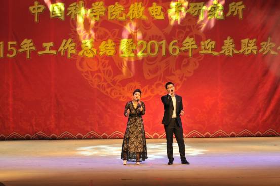 文藝演出在《為祖國干杯》的歡快節奏中拉開了序幕,所領導班子全體成員登臺向全所職工、學生和離退休同志拜年,致以節日的問候和美好的祝愿。演出堅持簡樸、節儉的原則,19個節目均由各黨支部、分工會、工青婦組織、物聯網研發中心和研究生會自編自導自演。武術表演《微wu青春》、舞蹈《打氣舞》和《Burning Floor》展現了微電子人的蓬勃朝氣;樂器演奏《荷塘月色》用悠揚的旋律展現了江南好風光;舞蹈《鴻雁》用情韻悠長的舞步詮釋了遼闊草原、蔚藍天空和大雁南飛的美景;歌曲《愛我》用美妙的歌聲滋潤了觀眾的心田;戲曲《“微”仙配》講述了微電子人與七仙女的浪漫故事;空竹表演《愛的傳遞》、小合唱《愛,因為在心中》和《地球你好嗎》體現了微電子人的社會責任感;歌曲《千千闕歌》、《說唱臉譜》用優美的旋律致敬經典;影子舞《回家》用純色的影像傳遞著親人間的思念;喜劇歌舞《WSTV News Report》、舞臺音樂劇《開心就好》和小品《相親》用詼諧幽默、寓教于樂的語言為觀眾帶去歡樂;大合唱《我的中國夢》、《今夜無眠》道出了微電子人對祖國的無限忠誠和對幸福生活的贊美。精彩紛呈的文藝節目,將現場氣氛一次次推向高潮,讓觀眾提前感受到了新春節日的歡樂氣氛。演出在《難忘今宵》的樂曲聲中落下帷幕。