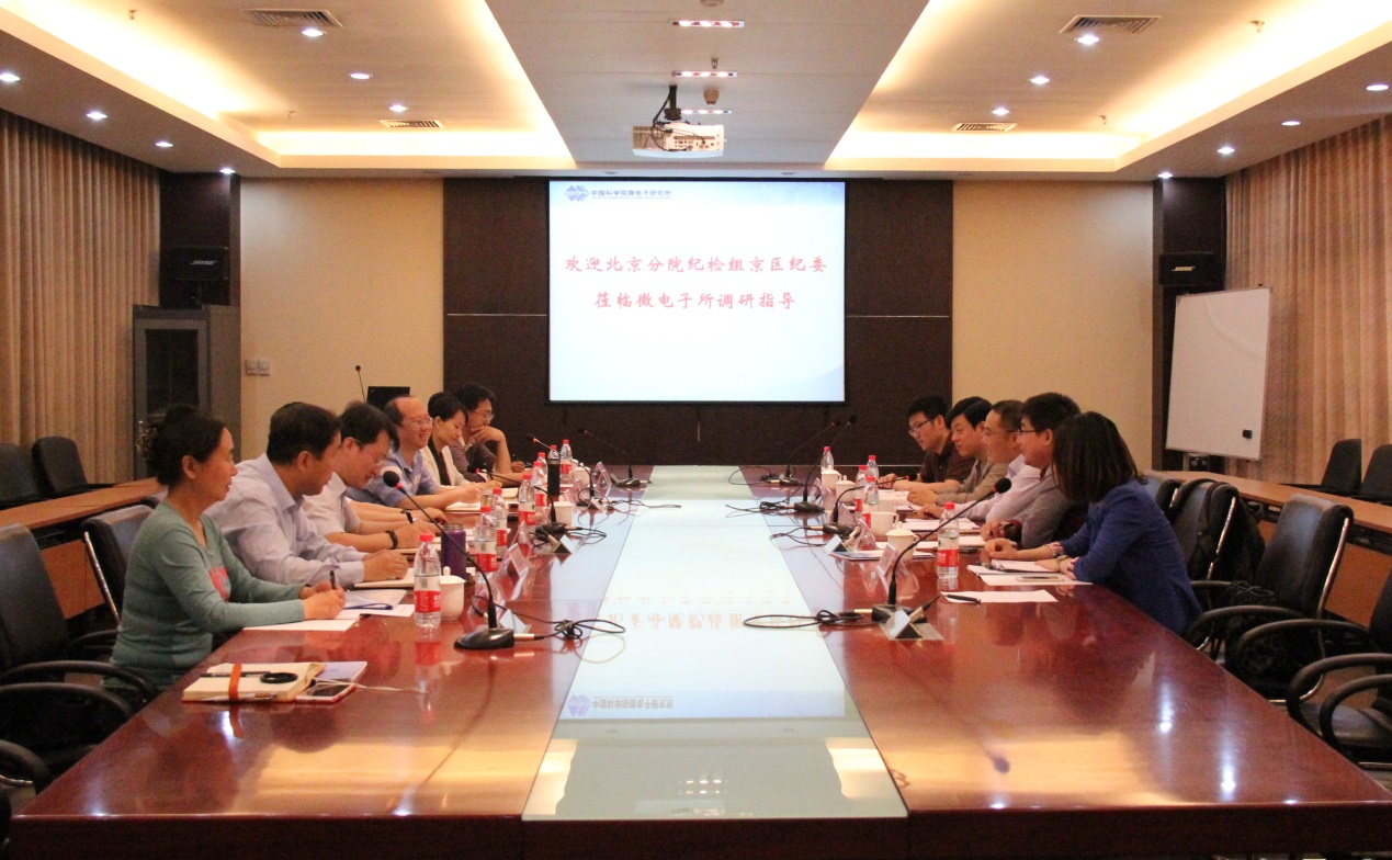 5月17日,北京分院紀檢組組長、京區黨委副書記、紀委書記倪宏一行5人到微電子所調研紀監審工作情況。微電子所黨委書記李培金,所黨委副書記、紀委書記趙志剛,所紀委委員以及紀監審辦公室工作人員參加了座談。