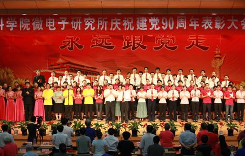 6月29日,京民大廈里黨旗飄揚、紅歌嘹亮,中國科學(xué)院微電子研究所慶祝建黨90周年表彰大會暨紅歌賽隆重舉行。中科院京區(qū)黨委組織員周憑欄,微電子所所長葉甜春、副所長周玉梅、副所長陳大鵬、...
