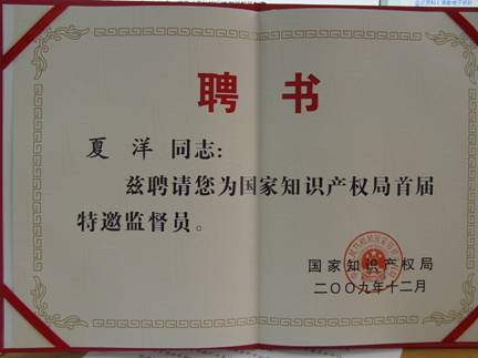 在首次聘請中,共從北京市人大代表、北京市政協(xié)委員、國有大型企業(yè)、高等院校、科研院所、地方知識產(chǎn)權(quán)局和專利代理機構(gòu)中遴選了13位特邀監(jiān)督員,夏洋研究員長期從事科研及標(biāo)準(zhǔn)化工作,擁有豐富的經(jīng)驗和專業(yè)資質(zhì),作為科研院所唯一代表被聘請為首屆特邀監(jiān)督員,任期三年。