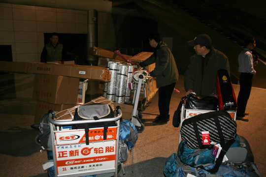 4月15日晚救災(zāi)隊員攜設(shè)備抵達西寧曹家堡機場。
