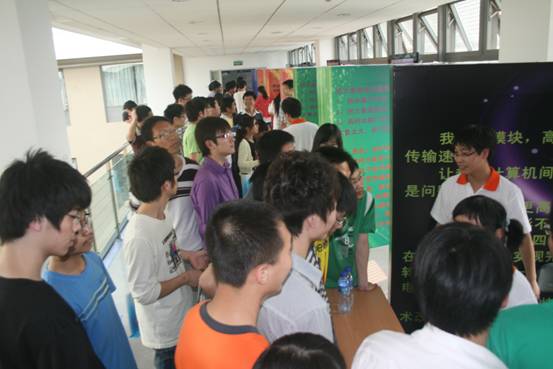 作品展示臺前,參觀者通過觀看影像以及與選手的直接交流或親自動手操作,對作品所表達的科學(xué)道理有了更加深入和形象的理解,對微電子技術(shù)產(chǎn)生了濃厚的興趣。最后,每位參觀者還親自投票選出了最喜歡的作品。通過評比,七室周雋雄、連永懿的作品《感知地球——物聯(lián)的世界》獲得一等獎;四室戈勤的《它——讓大象進冰箱》,九室相海飛、周靜的《激光通信——超級計算機、高清視頻、高速網(wǎng)絡(luò)的幕后英雄》獲得二等獎;六室劉暢的《神奇的小型化通信世界》,十一室黃水龍的《神奇的射頻標簽(RFID)技術(shù)》獲得三等獎。