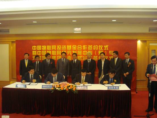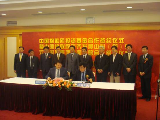 理事會(huì)前,研發(fā)中心與大唐電信科技公司、無錫國(guó)聯(lián)集團(tuán)、無錫新區(qū)創(chuàng)業(yè)投資集團(tuán)公司簽署了共建“中國(guó)物聯(lián)網(wǎng)投資基金”框架協(xié)議,與無錫國(guó)聯(lián)集團(tuán)公司簽署了全面戰(zhàn)略合作協(xié)議。施爾畏副院長(zhǎng)、無錫市委書記楊衛(wèi)澤、無錫市領(lǐng)導(dǎo)毛小平、談學(xué)明等出席了簽約儀式。